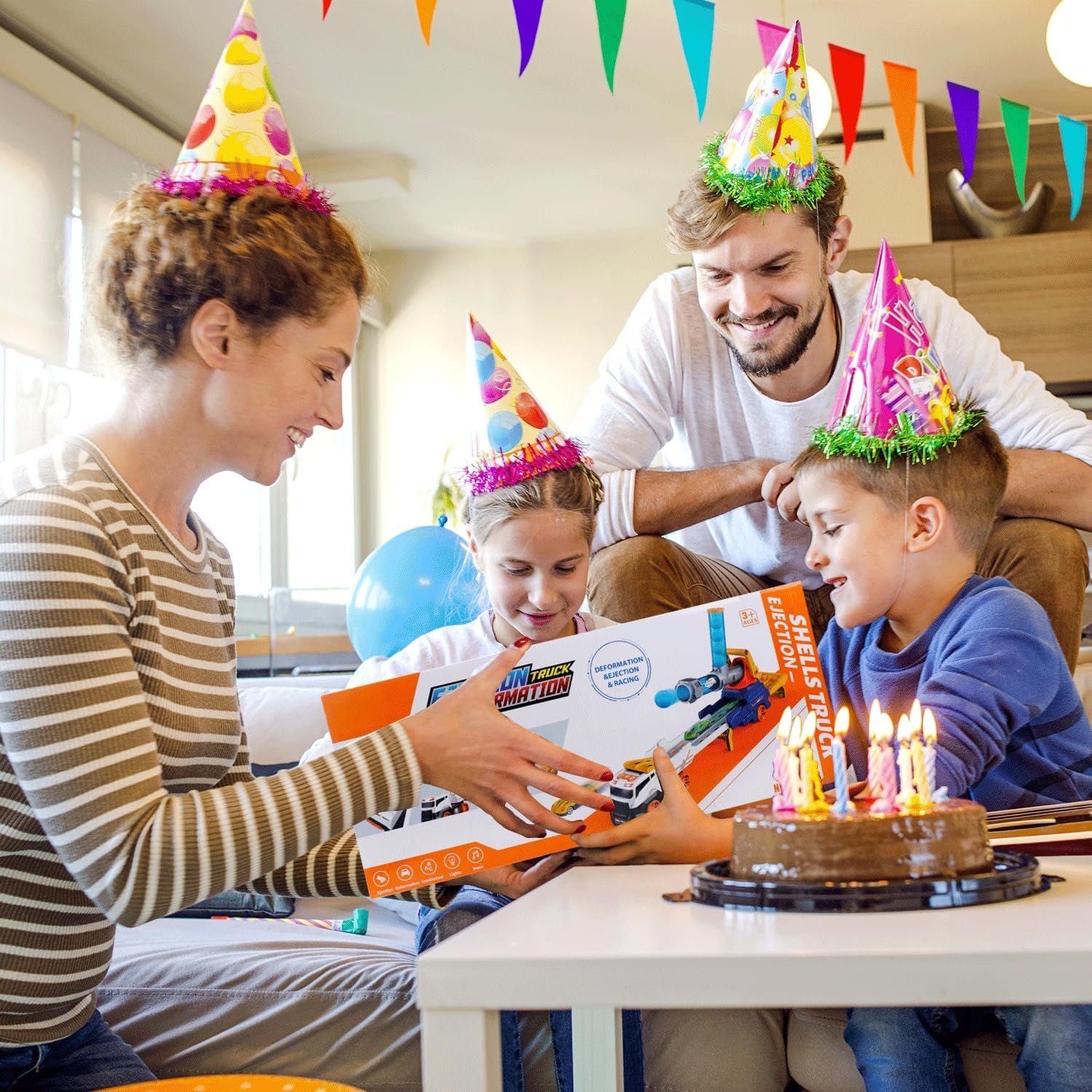 • Ejection Truck Set Toys‘: this truck toys include 1 large ejection transport truck, 2 ejection alloy racing cars, 4 soft & safe balls, a 360 degree launcher, and truck stickers. It is perfect toys for kids play with parents, brother, sister, cousin, and friends!